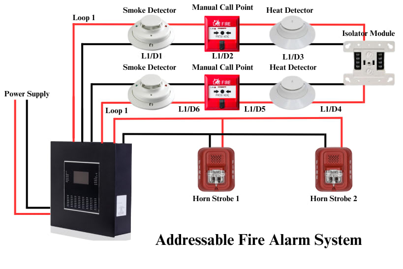 🔹 سیستم اعلام حریق آدرسپذیر (Addressable Fire Alarm System)